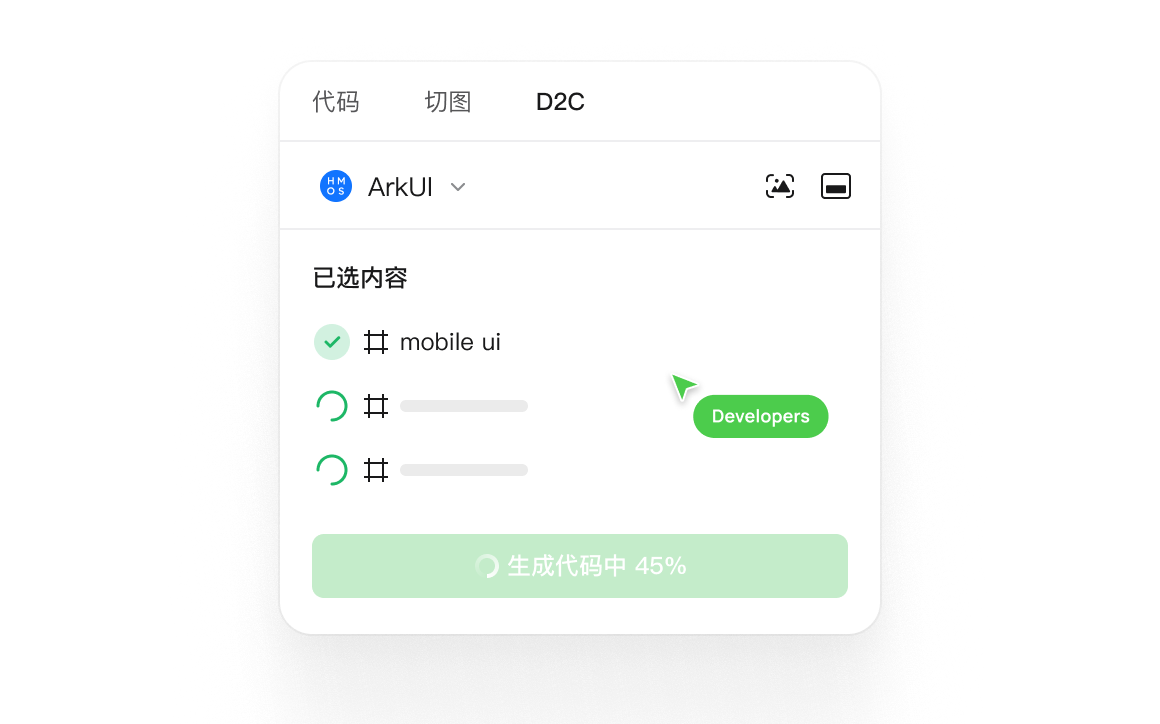 当前已支持各种设计稿一键转为生产级代码,包括鸿蒙ArkUI/HTML/Flutter代码