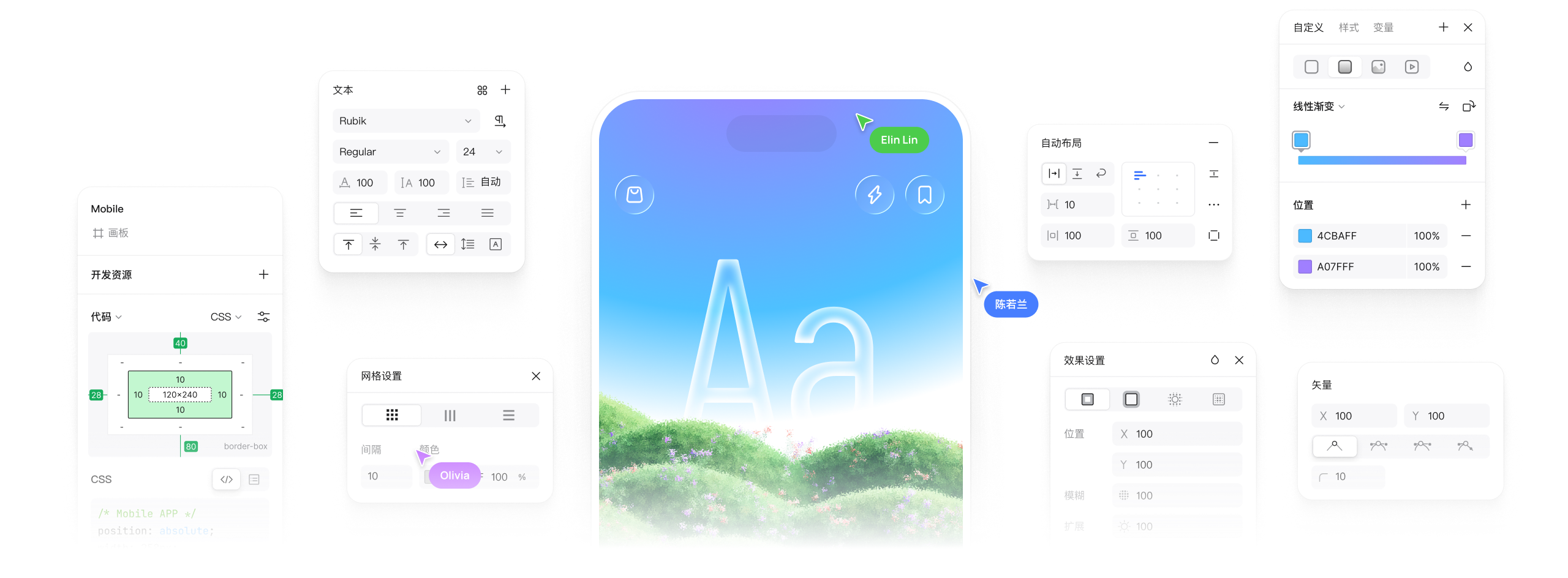Pixso的可视化编辑器与代码无缝同步。直观的拖放操作、响应式布局,让您可以轻松设计、管理和交付
